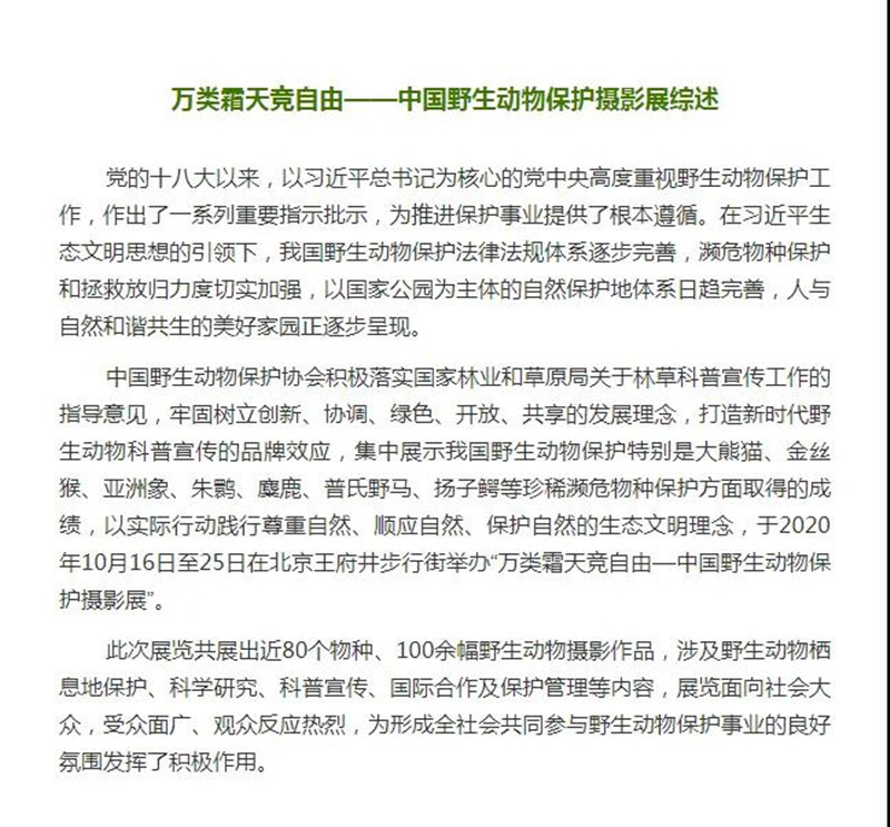萬(wàn)類(lèi)霜天競(jìng)自由——中國(guó)野生動(dòng)物保護(hù)攝影展