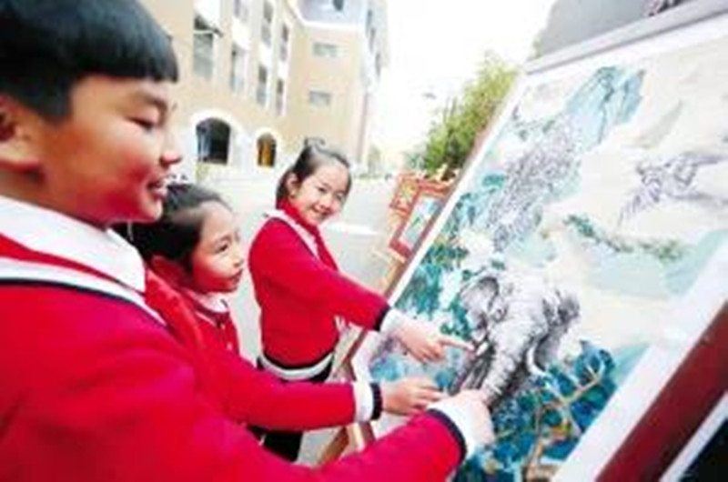 昆明小學(xué)生通過繪畫作品學(xué)習(xí)生物多樣性。