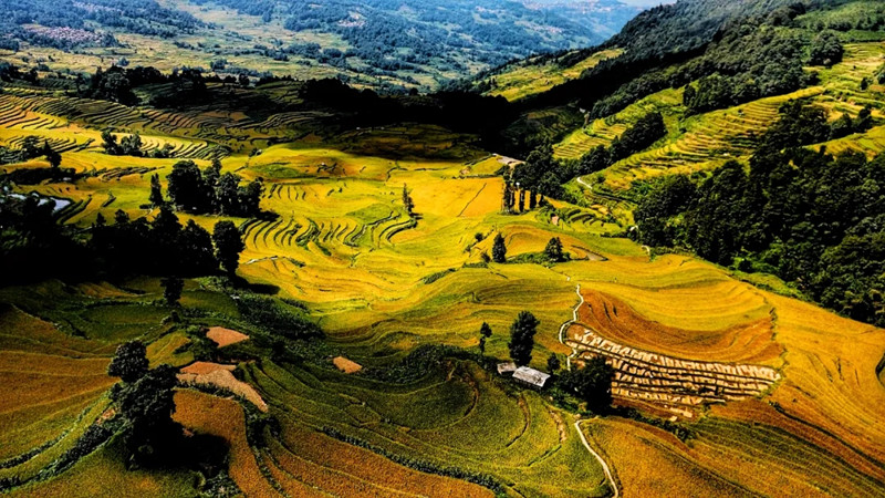 哈尼梯田里的稻谷成熟,一派豐收景象 紅河州委宣傳部供圖